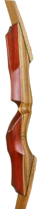 JOHN A. JORDAN works alone in Ohio. He does it with a great modesty and he doesn't make a great advertising to his work. This could be the reason why his name is not so famous among USA bowyers. I found him during a long trip crossing USA and I felt after the first shoot I was testing a really good bow.r He produces just a recurve TD, nothing else then a solid, fast, accurate TD recurve. Without a great excess valuable details, the right bow for those who look just for essential, high performance, hunting bow. Red Elm limbs with clear fiberglass, real hardwood riser with a great comfortable grip, 58", 60" and 62" of length, but, on the contrary to the most of recurve bows, the different lengths are not just the results of the shorter riser or limbs. The limbs design of the 58" is totally different from the longer, peculiarly studied for this length; should be for this reason than the 58" performs as well as the 62". The bow carries fast flight string.
